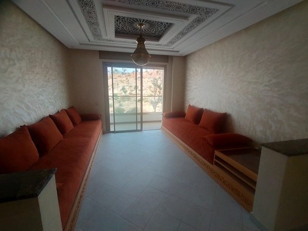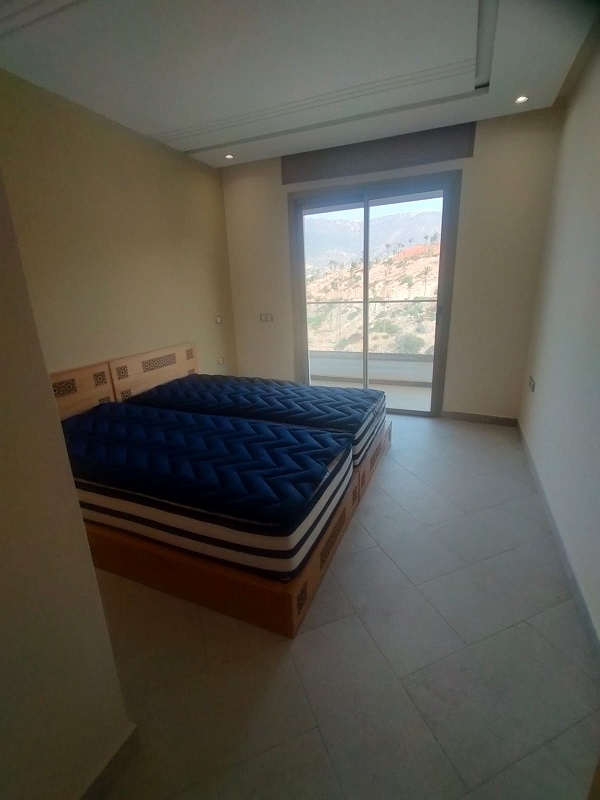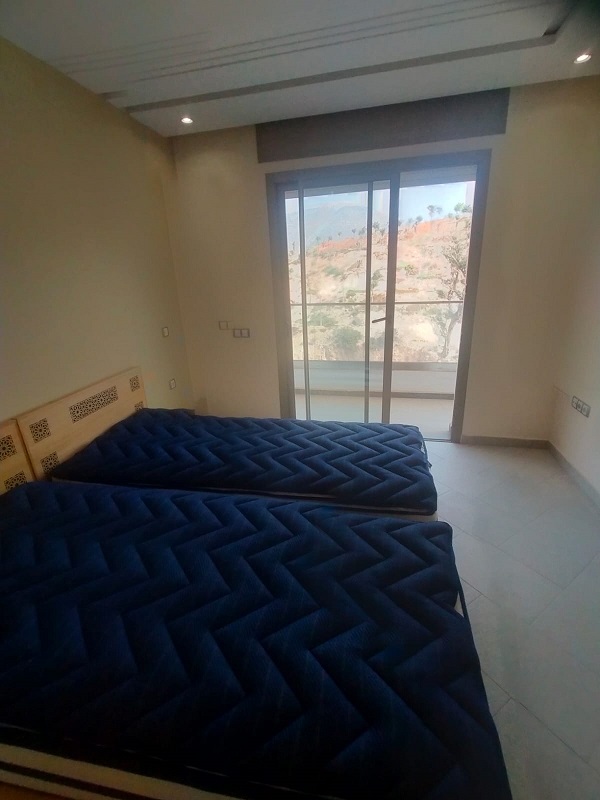 Offre à saisir : Très bel appartement à louer d’une superficie de 91m², plus une place de parking sous-sol titré, situé au 4ème étage avec ascenseur, composé de 2 chambres à coucher avec placards, 2 sdb, un salon, une grande cuisine équipée, l’appartement est bien exposé, disposant d’un balcon traversant avec une vue magnifique sur les montagnes d’agadir Ouflla et le téléphérique.