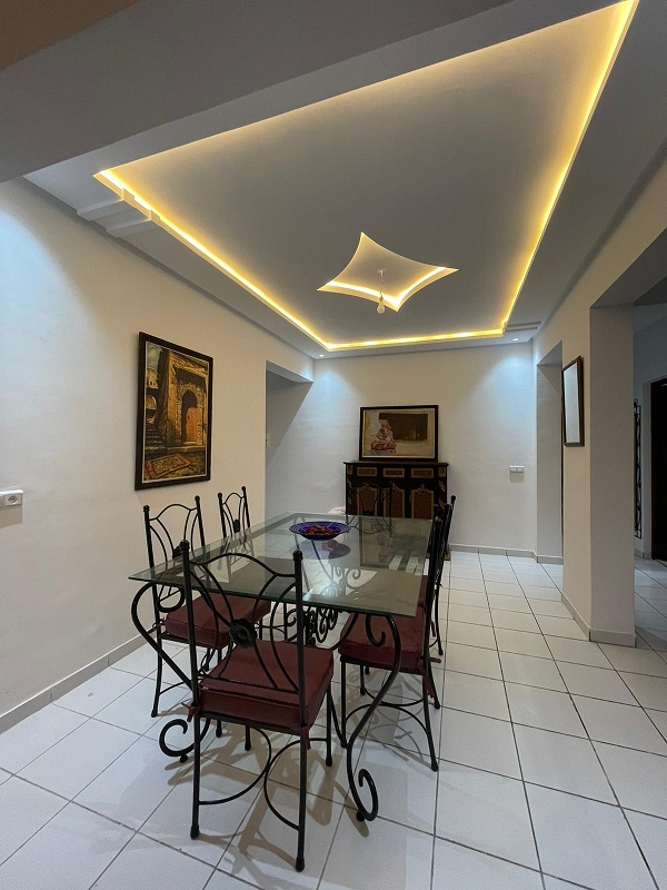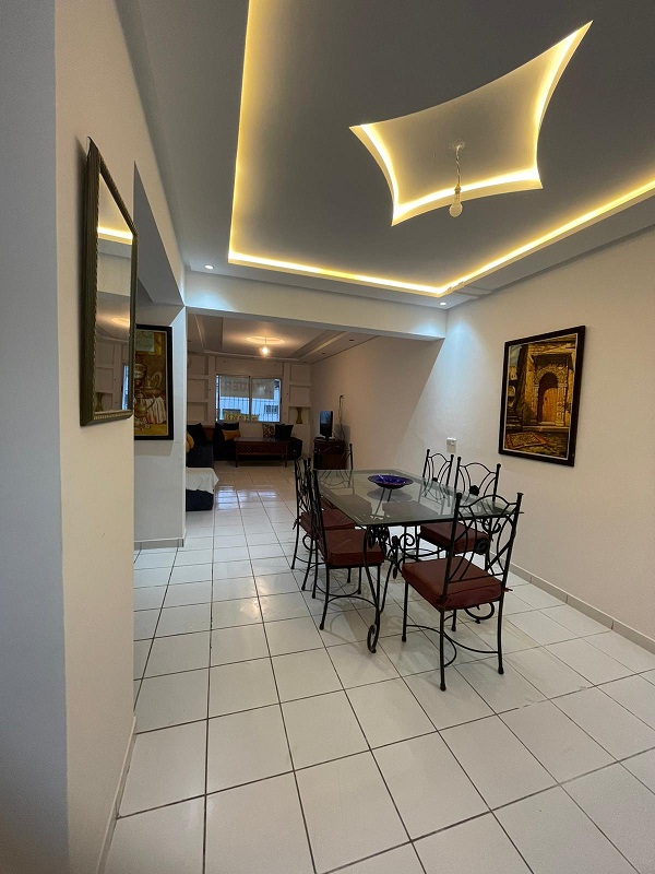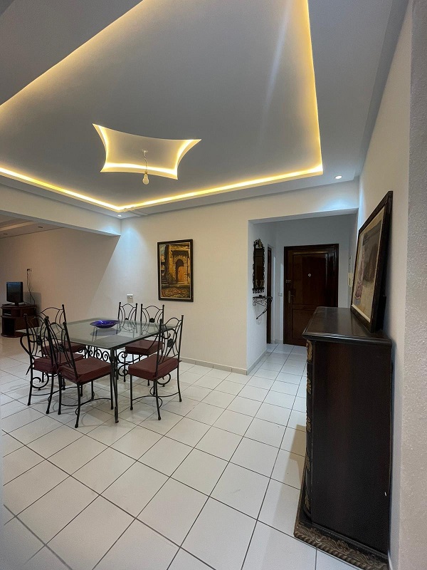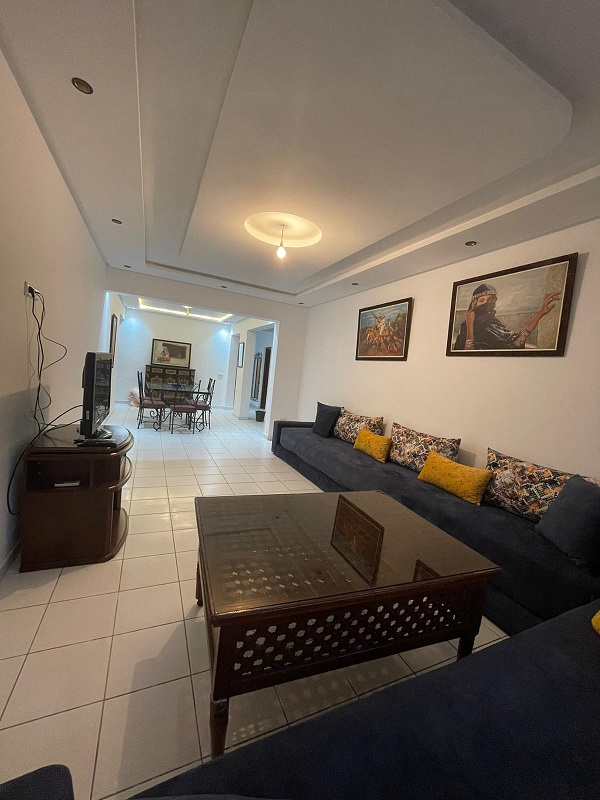 Bel appartement propre, en location longue durée, meublé et équipé d’une superficie de 118m², composé de 3 chambres à coucher avec placards, un salon, coin salle à manger, 2 sdb , une cuisine équipée , résidence familiale et sécurisée, proche de toutes commodités, commerces, transports…….. plage